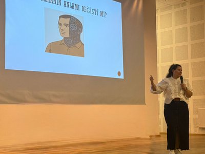 Ardından Bekar ekledi, “Makineleşen insan teknolojinin özellikle yapay zeka, robotik ve biyoteknoloji alanlarının gelişmesiyle insan bedeninin ve zihninin makinelerle bütünleşmesini ya da insanın davranışlarını makine gibi standartlaşmasını anlatan bir kavram pekiii!!! Çin odası deneyi nedir? İnsan özünde ne vardır?” gibi sorular yöneltip katılımcılarla soru cevap yaparak konuşmasını sonlandırdı. Sayın hocalarımıza konuşmalarını sonlandırdıktan sonra teşekkür belgesi taktim edildi.